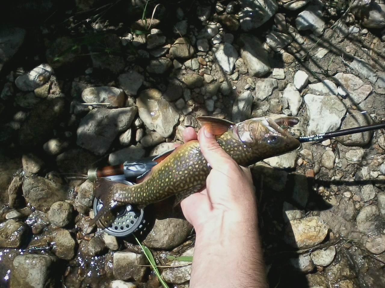 My son Luke and I started fishing the lakebed section of the Birch Run reservoir (drained years ago) last year. My son Craig and grand nephew Hunter Haney fished it this year. The brookies are abundant and casting is tight. Most of these wild beauties are the size of your hand, but there are a few surprises. Craig and I both caught “natives” around 11″ by using caddis and attractor flies in the runs and pools.
