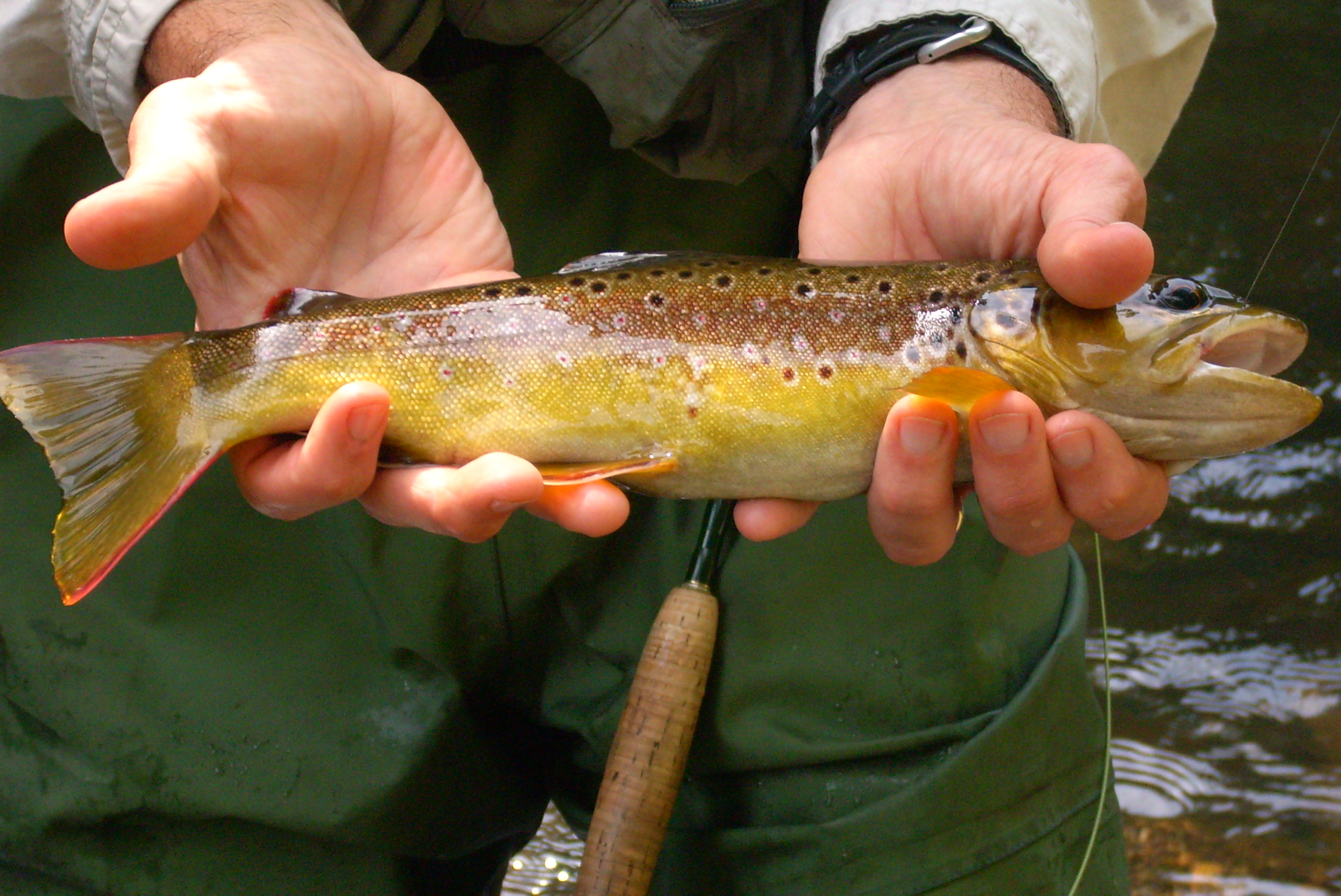 Also consistent with recent years, my brother-in law Ron Hill and his wife Lynn drive here from New Castle PA to attend. So, I am forced to entertain Ron by taking him fishing. The weather was beautiful on Sunday, the upper section of the Yellow Breeches was in good shape and the fish were actively rising to our flies – parachute adams, BWO, hopper. No monsters, but we quit after landing 24 wild browns, mostly in the 9-10″ range.