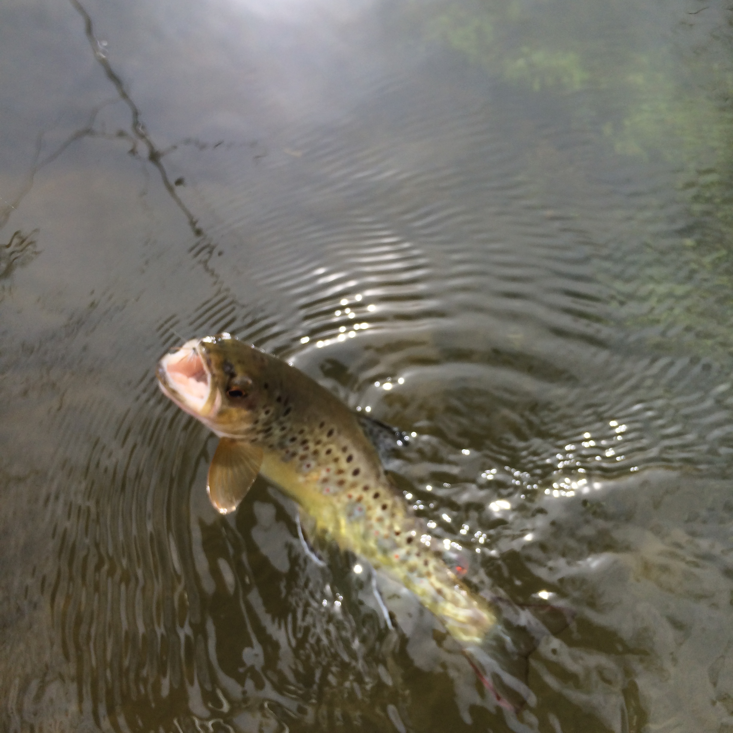 Although a bright sunny day, Blue Winged Olives were coming off all afternoon, not in great abundance, but enough to get the fish rising. A size #20 BWO was the ticket to land numerous wild browns and a wild rainbow. None were over 12 inches, but I lost a real nice one while fishing an eddy in the stretch of water behind the shop. It’s always about the one that got away!