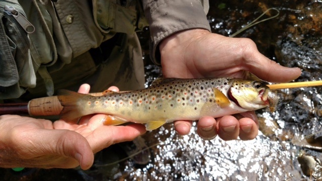 Ron Hill and I fished lower Pine at Slate Run with the purpose of catching 2 big Browns. Mission accomplished! We caught 2 16″ Browns on size #22 gray hackle flies. Both were “sippers”. It’s amazing how these nice fish will focus on small flies and casting anything bigger gets refused.